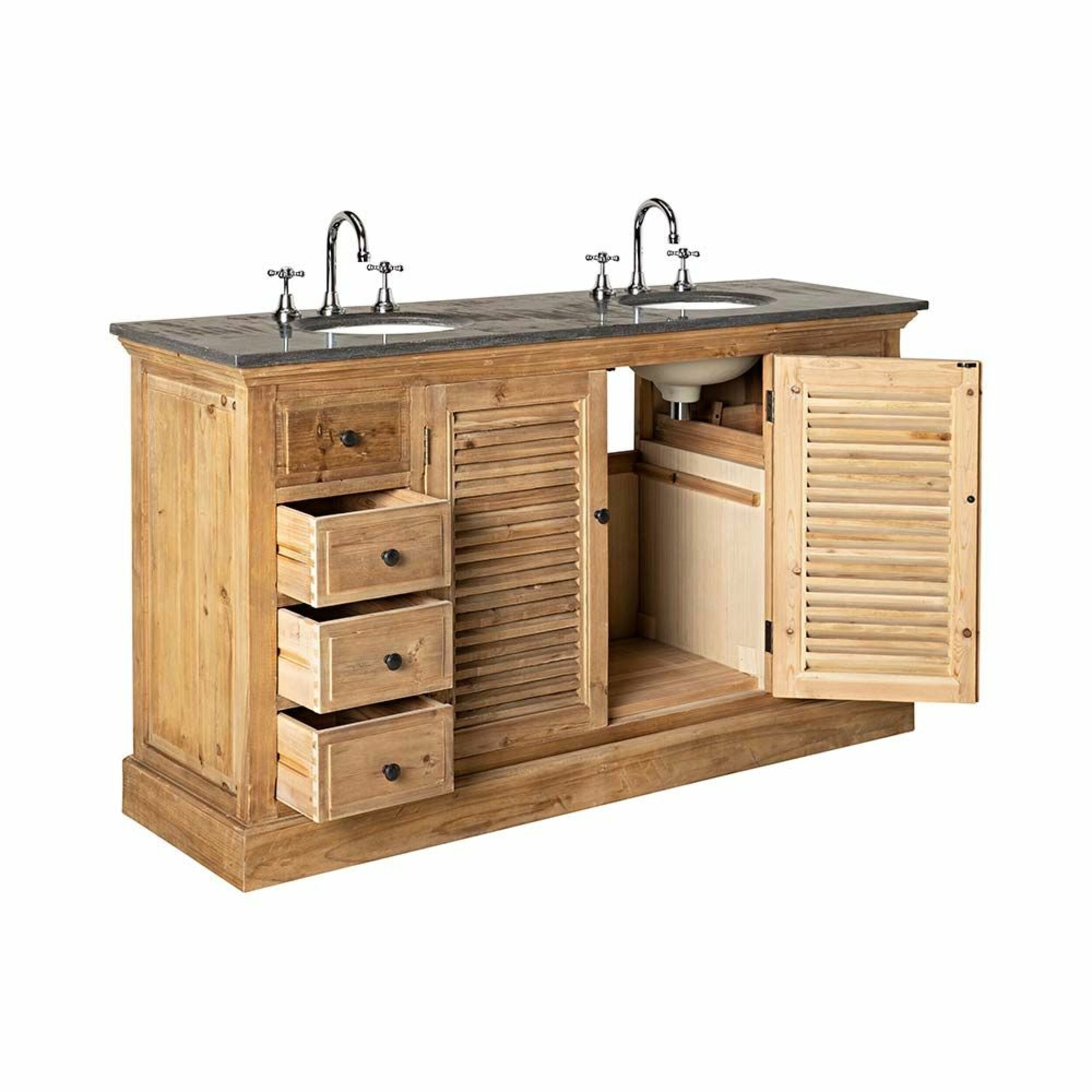 Louver Double Vanity 150cm With Blue Stone Top